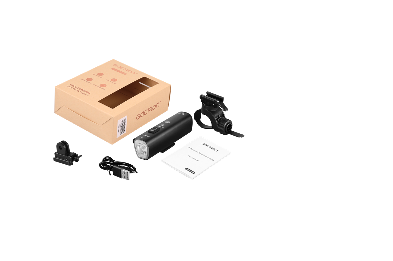 Gaciron 1000 & 1500 Lumen are made of high-quality materials, are robust, easy to mount, and waterproof with IP X6 certification. The front light has a long battery life and can be easily charged with the included USB cable. The charging indicator warns you in advance when the light needs to be charged.