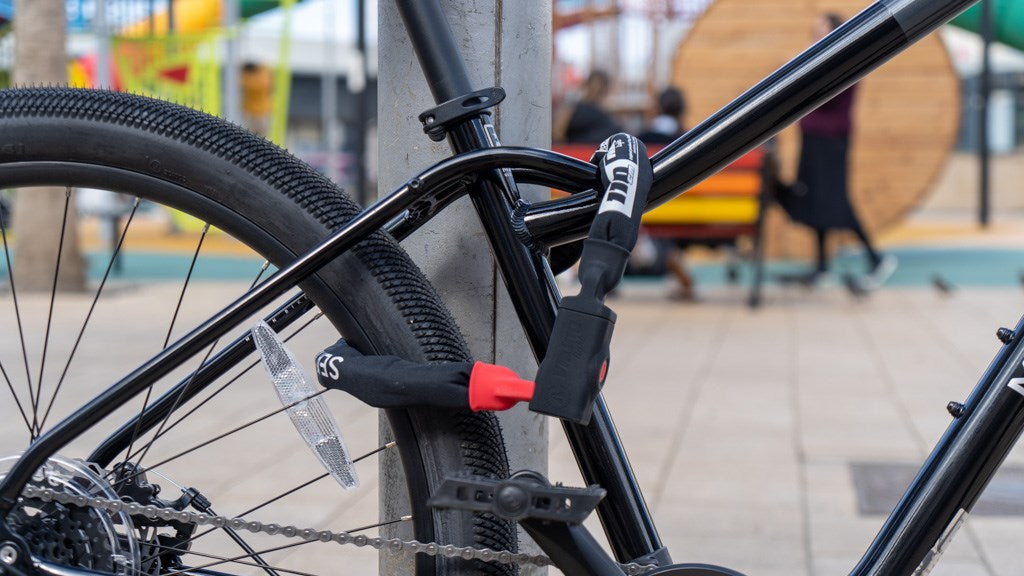 Here you have a practical and compact lock with a special locking mechanism. The magnetized fastening mechanism enables partial locking and makes the lock very practical and easy to use. It also locks with the included keys. An automatic closing mechanism prevents dust, water, and dirt from penetrating the inner parts of the lock. The chain sleeve in neoprene is specially designed to reduce rattling and ensure that the lock components stay dry. On the outside, you'll find a protective silicone shell made of a soft polymer that protects the bike frame and provides extra durability.