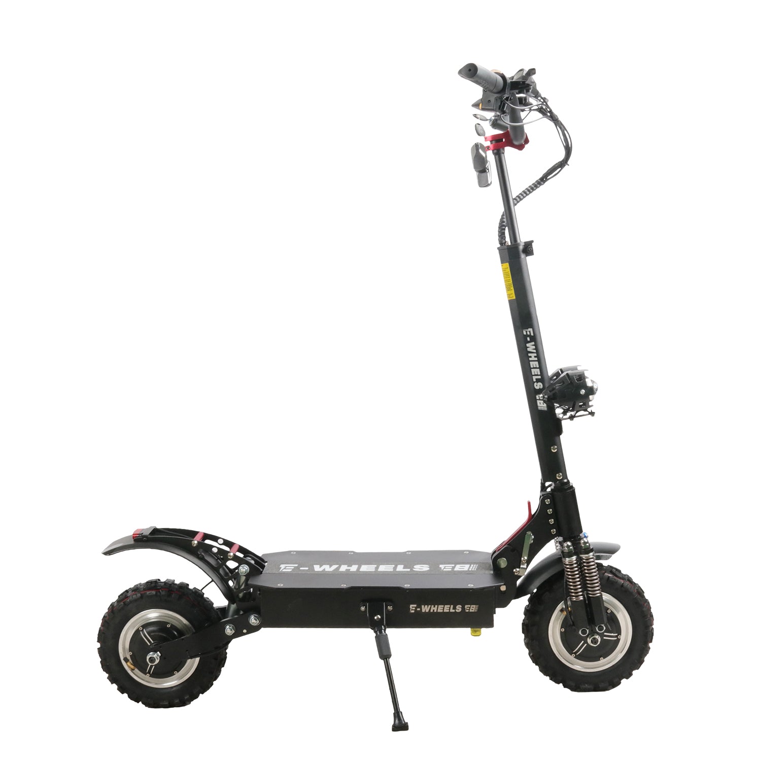 We find hydraulic disc brakes on both front and rear wheels, which ensure you the braking distance you need. Furthermore, the electric scooter is equipped with hydraulic dampers at the rear and double spring dampers at the front. Good brakes are important to have a safe and pleasant driving experience, which E-wheels E8 offers!
